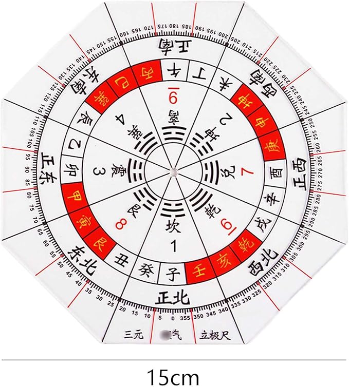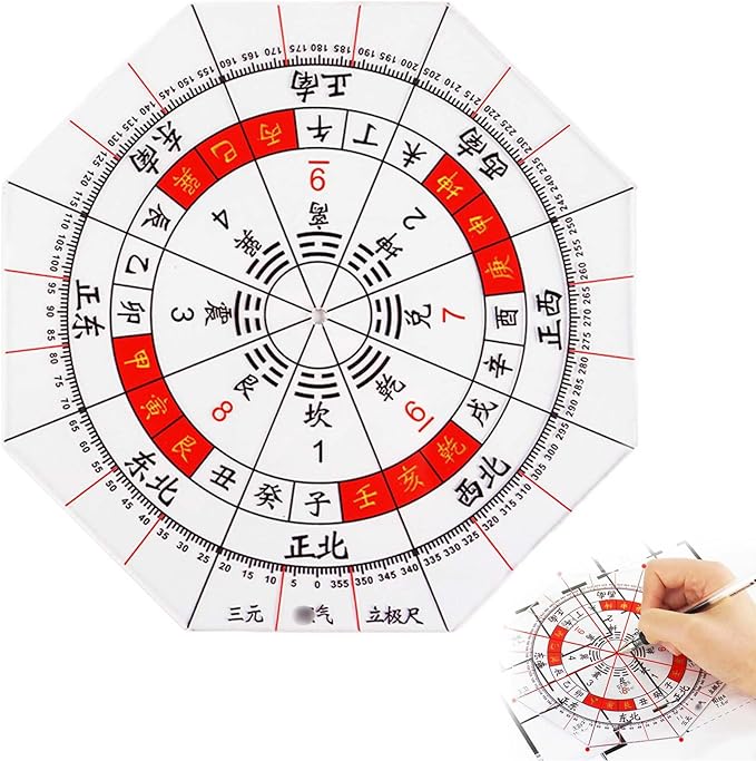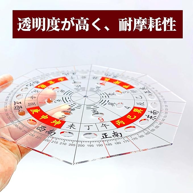 分度器 プラスチック分度 アクリル分度器 方位分度器 全円分度器 透明方位盤 測定ツール 玄空飛星 八宅風水 風水羅盤透明シート 干支による方位を付した分度器 8角形