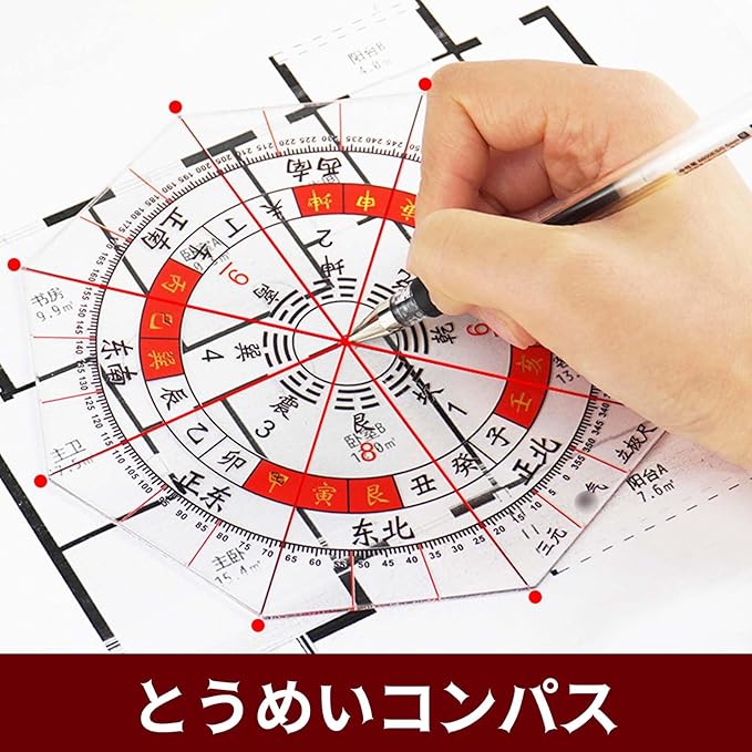 【製品の特徴】15cm全円分度器に東西南北、干支による方位を付した分度器です。この八角形の分度器は透明で、目盛りが簡単に読めます。 透明な目盛りは正確な測定を保証します。