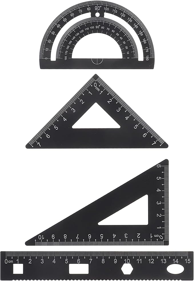 4個の金属定規セットジオメトリツールセットアルミ三角定規分度器スケール定規文房具セット生徒学生オフィス