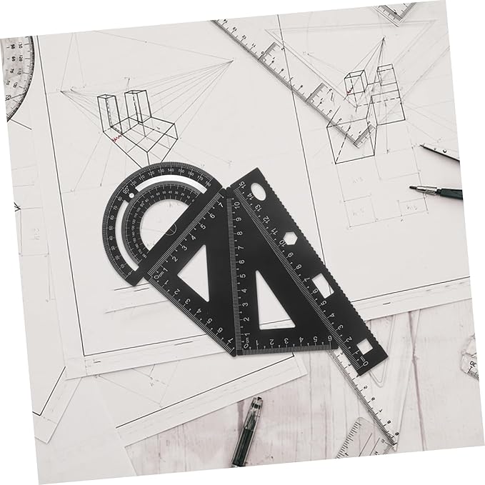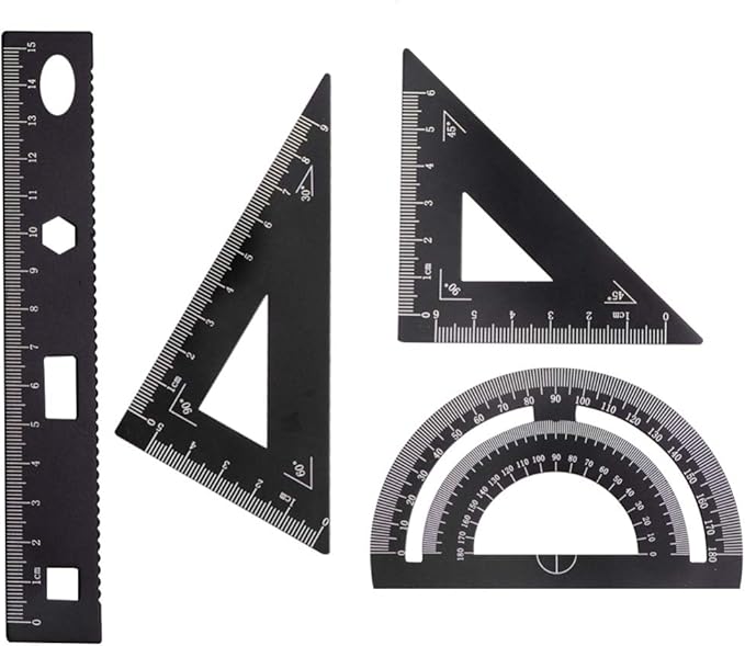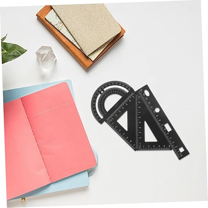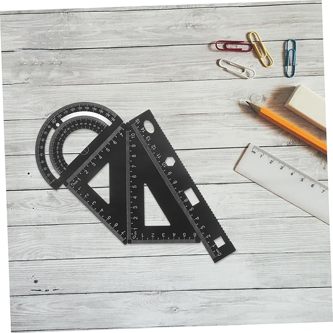 FOMIYES 1 セット 幾何学 セット メタル 分度器 メタル セット 正方形 三角形 定規 製図 三角形 製図 定規 For 建築 学生 黒
