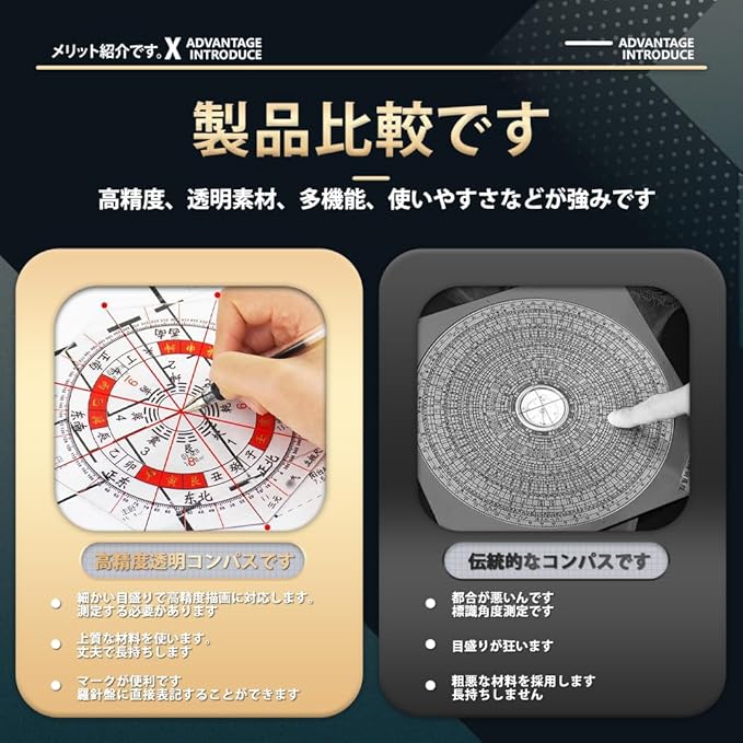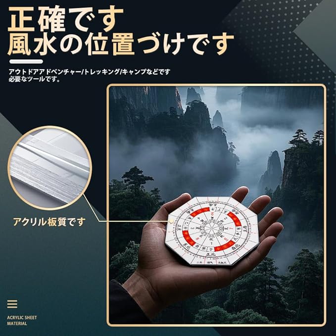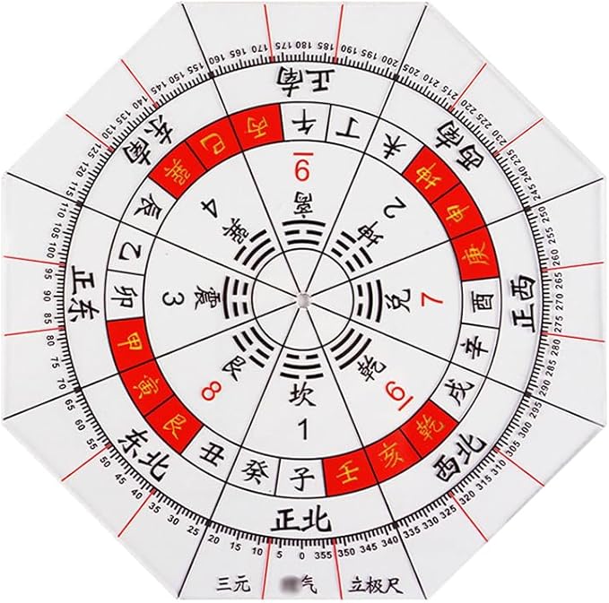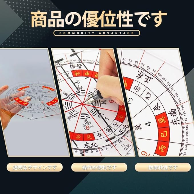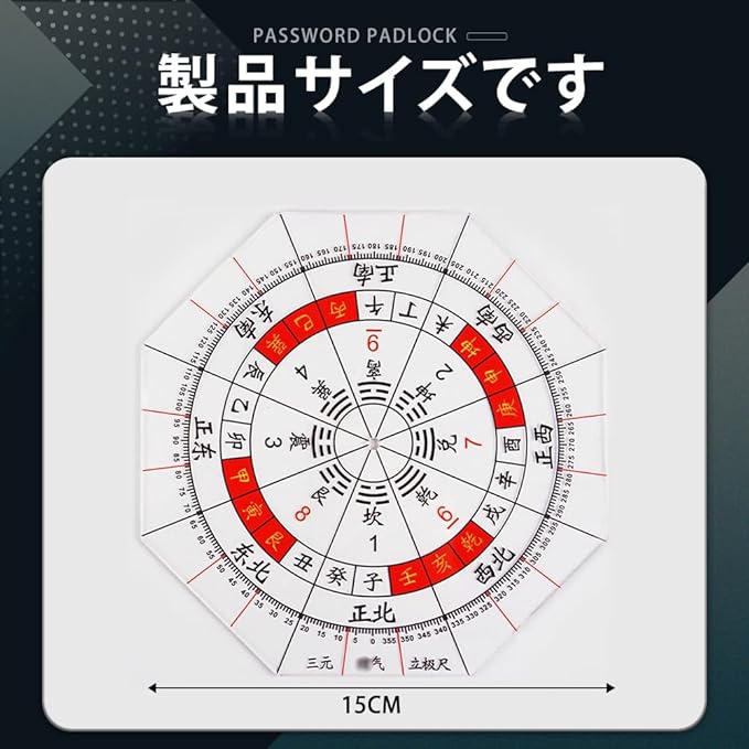 方位分度器 全円分度器に東西南北 透明方位盤 8角形分度器に東西南北 八宅風水 玄空飛星 九星 気学 八方 風水羅盤透明シート 家相 地相 干支 方位 15cm