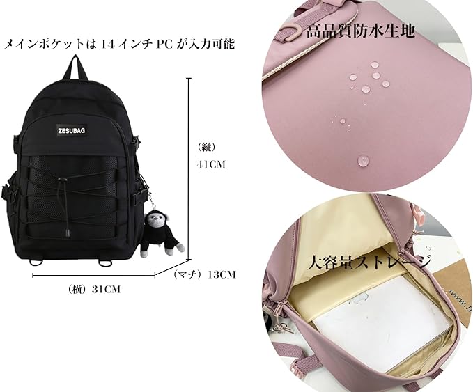 [ZESU] 韓国 リュック レディース 韓国 大容量 リュックサック バックパックタウンリュック 女子 人気 通勤 通学 学生 男女兼用 バッグ 高校生 メンズ りゅっくさっく アウトドア 黒