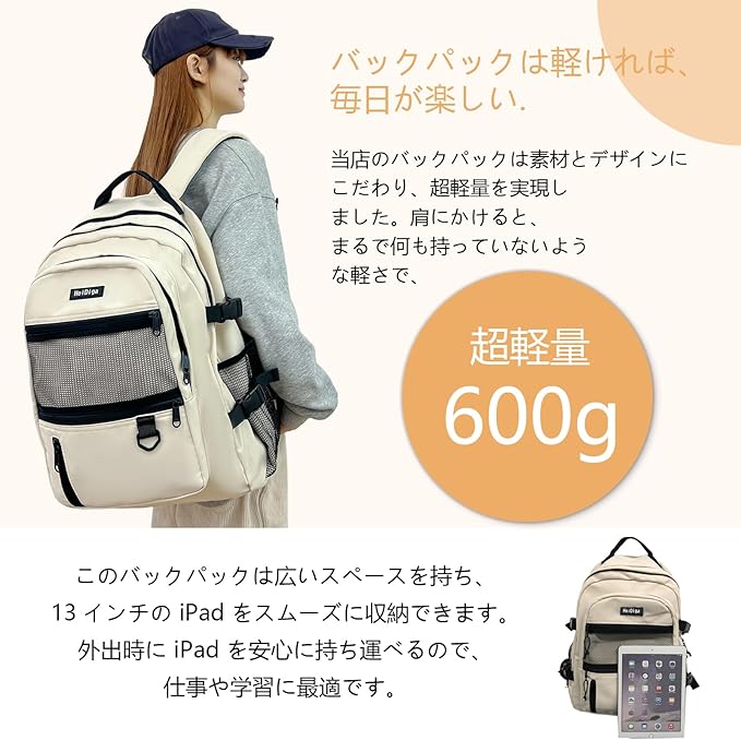 [Plelet] リュック レディース 大容量 通学 軽量 リュックサック 人気 韓国 高校生 女子 15.6インチ PC 収納 バックパック 防水 多機能 ポケット多い メッシュポケット おしゃれ 可愛い シンプル 黒 通勤 旅行 男女兼用