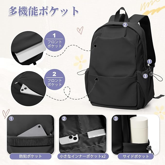 限定商品 レディース リュック リュックサック 大容量 タウンリュック 韓国 バックパック バッグ 女性 高校生 メンズ 女子 通学 通勤 旅行 軽量 防水 リュック ブラック