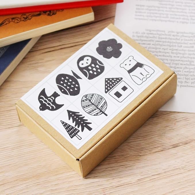 北欧風のデザインスタンプ8個セット。サンキューカードやお手紙、付箋など幅広く使えます。 ポンと押すだけでおしゃれな雰囲気になります!素材には天然ゴムとスタンプの台木には廃材や木くずなどを使用し環境に配慮しています。 シンプルな使い心地です。全て日本製で1つ1つ手作りで制作しております。 シンプルでかわいいパッケージ。プレゼントにもどうぞ。