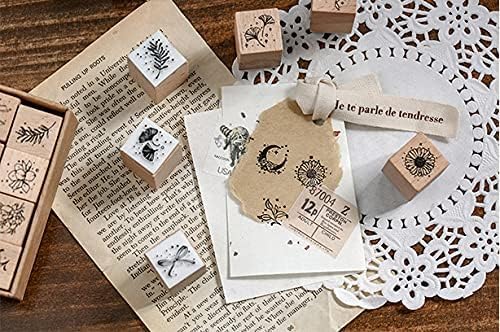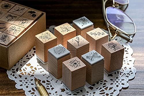 MissOrange『木製ゴム印セット』月 花 葉 ちょう結び クリエイティブスタンプセット クラフトカード スクラップブッキング 手帳用 16個セットM-26 (2-Bowknot Flower)