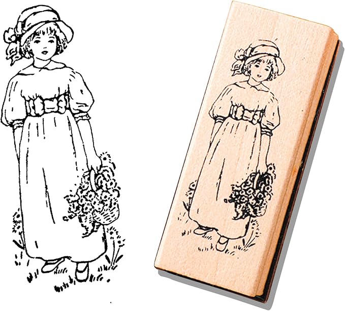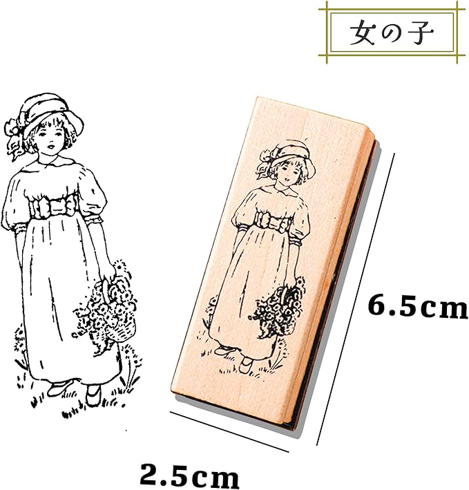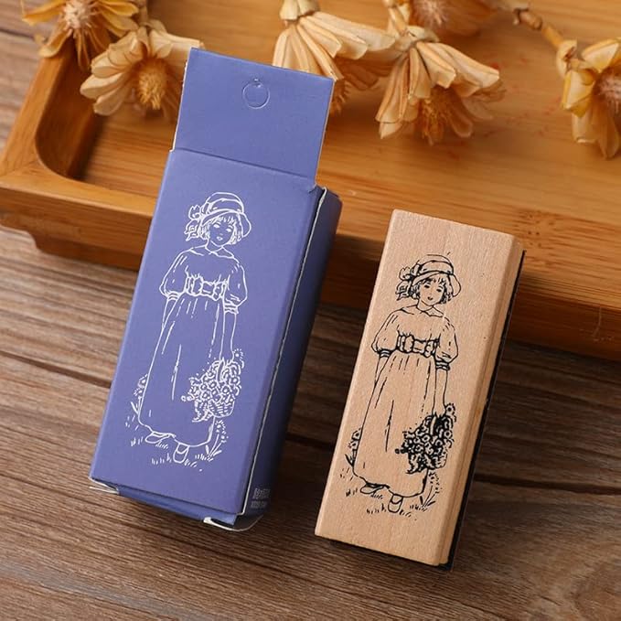 YALNe' 木製 スタンプ おしゃれ コラージュ スクラップ ヴィンテージ アルバム スクラップブッキング コラージュ 英字 ミニサイズ 手紙 植物 レトロ (女の子)