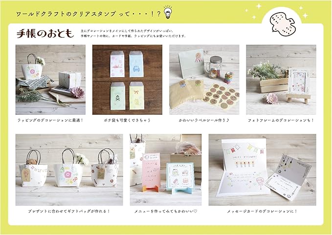 透明で押しやすく収納もラクラク、約20種類もの豊富なかわいいスタンプパーツがシート状になったクリアスタンプです。