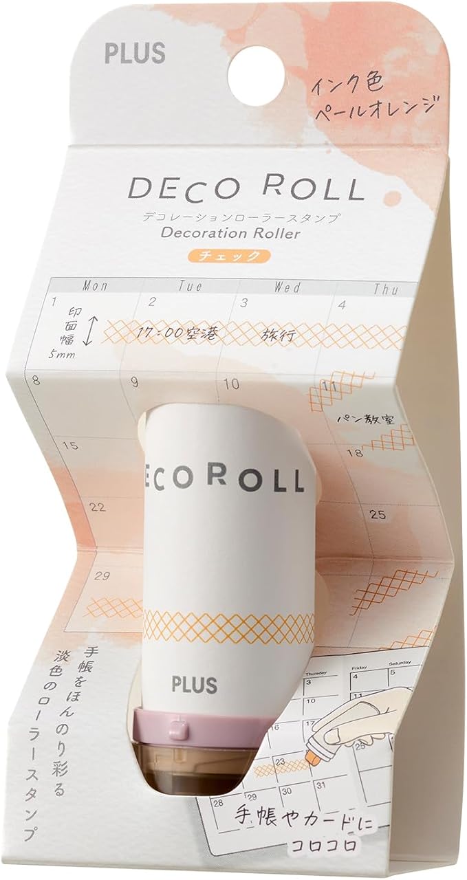 プラス ローラースタンプ デコロール 5mm幅 チェック ペールオレンジ IS-605DR 40-192