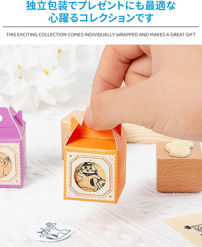 【八つの物語が詰まった猫の毎日】乾杯する猫、ヨガをする猫、旅行支度する猫など、ユーモアたっぷりの8ポーズを収録。木彫りの温もりを感じる手作り感あるデザインが、ノートや便箋にほっこりとした物語を紡ぎます。独立包装でプレゼントにも最適な、心躍るコレクションです