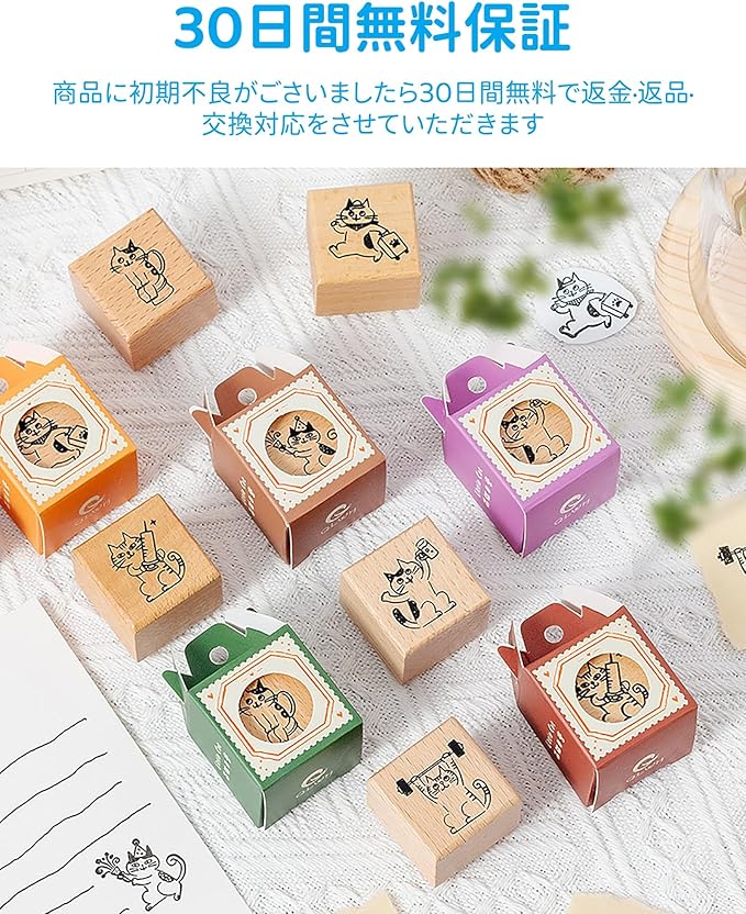 8個セット 木製スタンプ スタンプセット ねこ 猫の一日 猫 スタンプ かわいい ハンコ ゴムスタンプ Diy クラフト フォトアルバム スクラップブック 手帳用