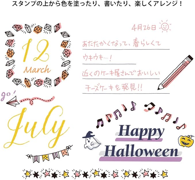 ノートやダイアリーなどを簡単にデコレーションできる楽しいスタンプ。