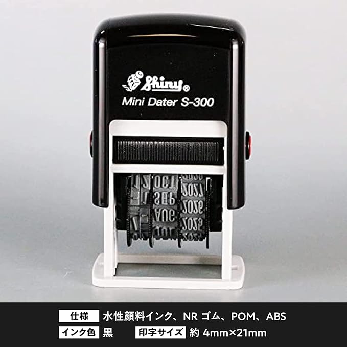 スタンテック シャイニー スタンプ ミニデイトプリンタ 5号 4連 S-300UK-AZ 正規輸入品 アクリロニトリルブタジエンスチレン (ABS) ブラック