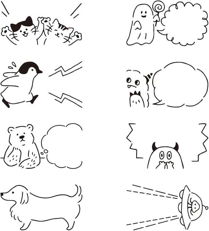使いやすい動物モチーフにくわえて、オバケや宇宙人なども組み合わせた、とてもユニークな吹き出し柄です。