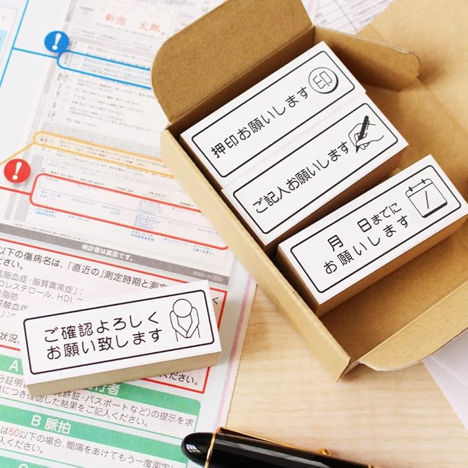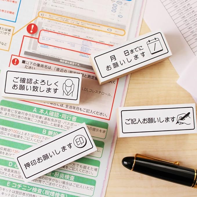 押印お願いします スタンプ 付箋 ゴム印 はんこ よろしくお願いします セット かわいい おしゃれ 仕事 オフィス プレゼント 日本製 (#57)