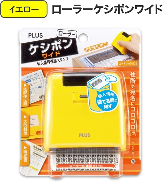 プラス 個人情報保護スタンプ ローラーケシポンワイド イエロー IS-510CM 38-134