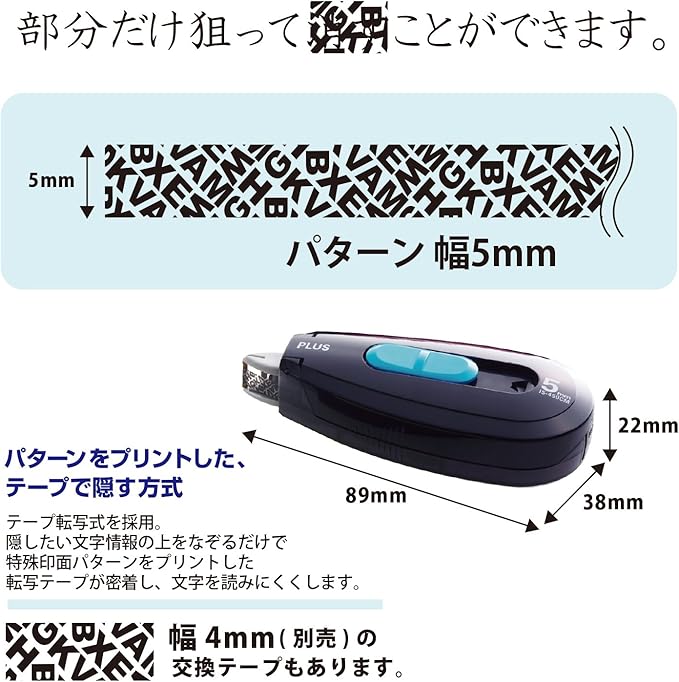 テープ交換式/1文字から1行まで、狙って隠せる