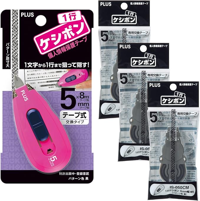 プラス 個人情報保護テープ 1行ケシポン ピンク 本体+交換テープ3個入 37258+37276 3