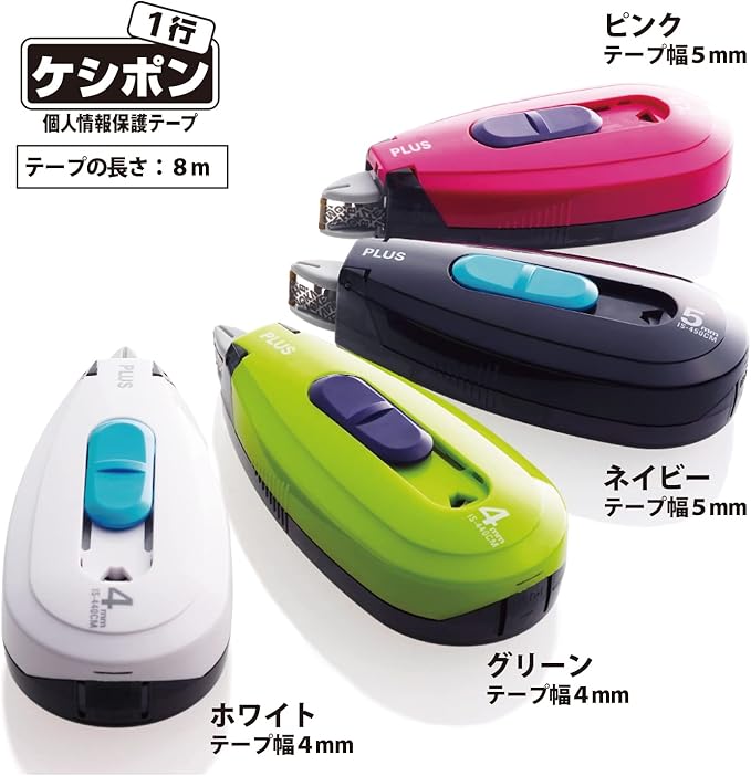 個人情報保護テープ1行ケシポンは、テープの幅が2種類。「5mm幅(交換テープはIS-050CM 37-276)」の他に「4mm」幅があります。