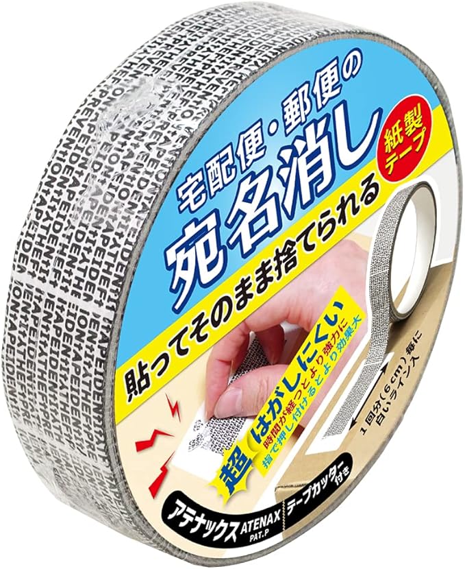 【宛名消し】TOHKIN/アテナックス 宅配便・郵便の宛名隠し用 超強力 紙製テープ テープカッター付き ATN-205 1巻入 幅20mm 5m 個人情報保護 セキュリティ