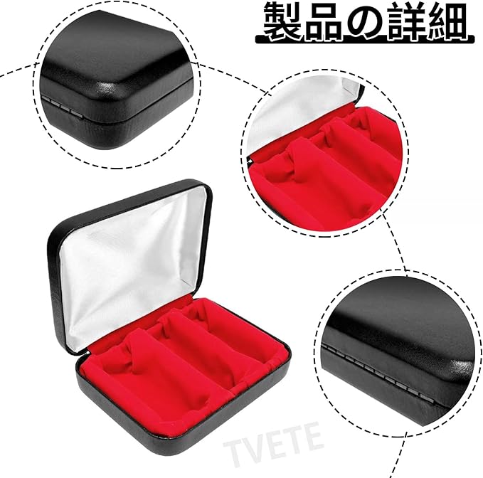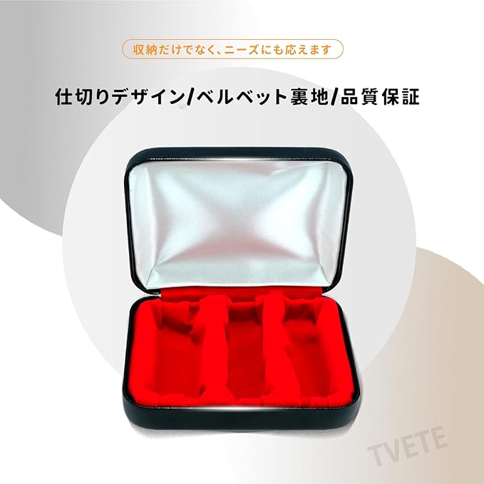 【法人実印(代表者印)に最適な収納サイズ】PUレザー製彫像スタンプボックス3点セット。コンパートメントデザインで収納も簡単。長さ/106.4mm、高さ/32mm、幅/82.7mm、重量/125g。左カードスロット/29mm 65mm、中央カードスロット/24mm 65mm、右カードスロット/20mm 65mm。