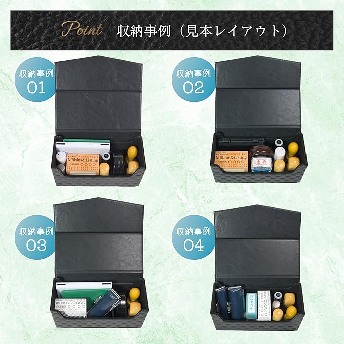 ✅契約・商談・取引などのビジネスシーンにスタイリッシュな印箱 ・各種印鑑・ゴム印・ビジネス用スタンプ・朱肉・スタンプ台・捺印マットまで収納できます。