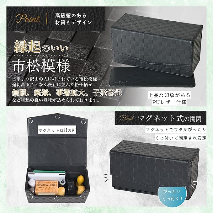 M bius 【市松模様で縁起のいい・法人 印鑑ケース シリーズ・中型サイズ】 ハンコケース ゴム印ケース 印箱 判子ケース 法人用 会社 印鑑 ケース 法人 (印鑑 ゴム印 朱肉 スタンプ台 など) 捺印マット付き №09