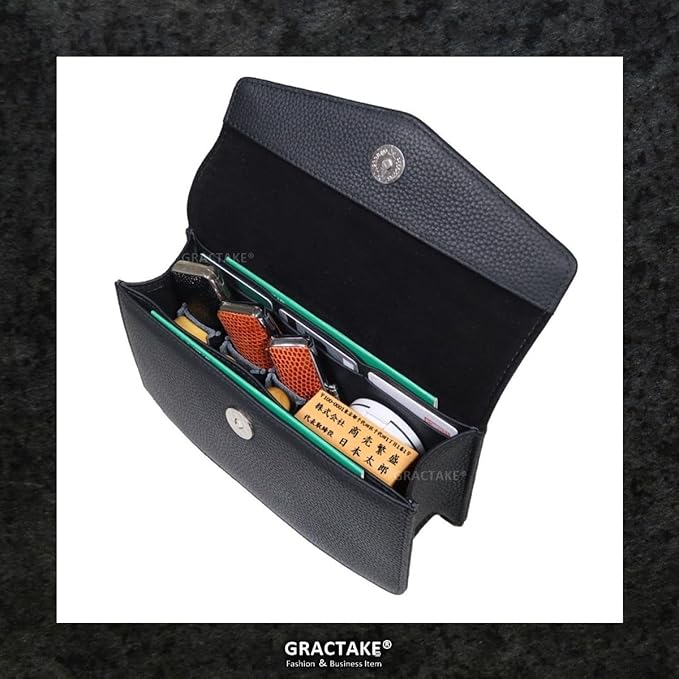 印鑑ケース 法人 一括収納ケース 3本 ゴム印 (実印 銀行印 角印 認印 横判 など) 持ち運び 携帯用 本革 牛革製 06