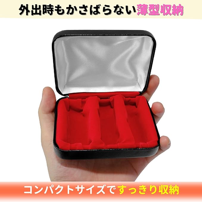 【外出時もかさばらない薄型収納】「法人印鑑3本をまとめて歩きたいけど、かさばるのは嫌…」当店の法人印鑑ケースは横8.3cm、縦10.6cm、高さ3.2cm、重量約125gと名刺入れを少し大きくした程度のサイズ感。実印・銀行印・角印の印鑑3本がすっきりまとめて入ります。上品な見た目で商談・契約シーンも安心。おしゃれでコンパクトな薄型設計のため、持ち運びも非常に便利です。