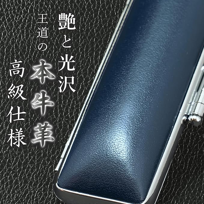 M bius 【 日本製 職人の技 本牛革 印鑑ケース 】 真鍮 高級仕上げ 3サイズ 認印 銀行印 実印 対応 外張 本革 紺 ネイビー 内張 桜 (S/10.5㎜~12.0㎜) (M/13.5㎜~15.0㎜)(L/16.5㎜18.0㎜) Made in Japan 印章ケース 匠シリーズ №61 【商品L/16.5㎜~18.0㎜】
