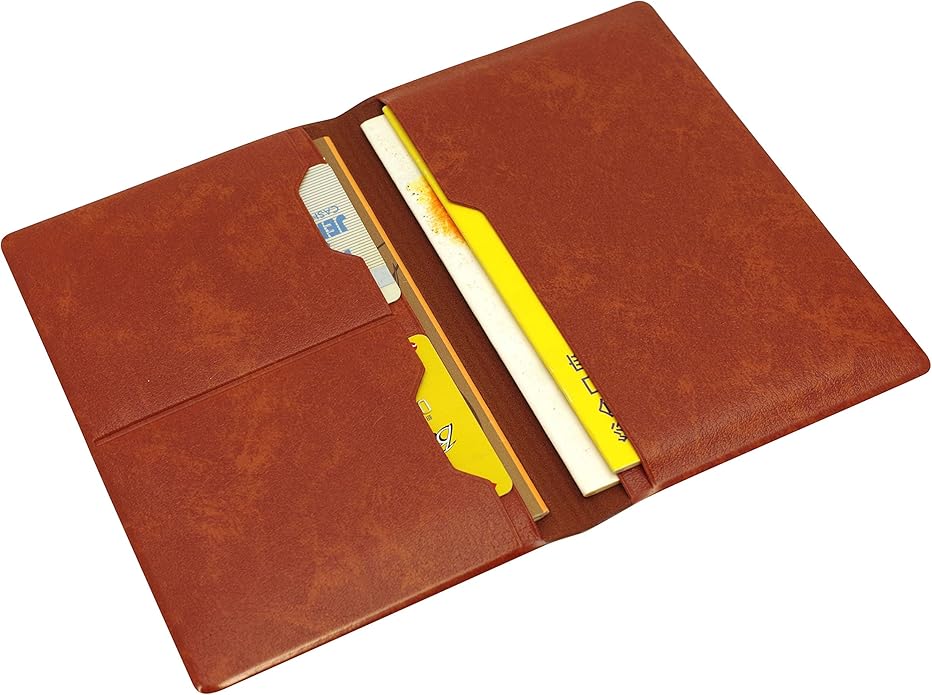 ゴールドの箔をワンポイントで入れたシンプルな通帳ケース。 カード収納は2枚、通帳は3つのポケットに収納できます。 水濡れや汚れにも強いPVCで、革のようなシボとやわらかな手触りが特徴。