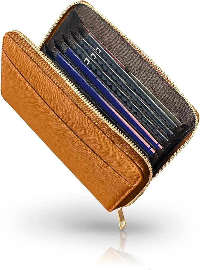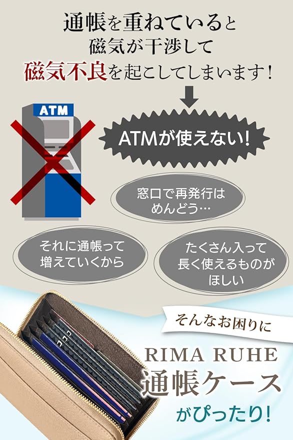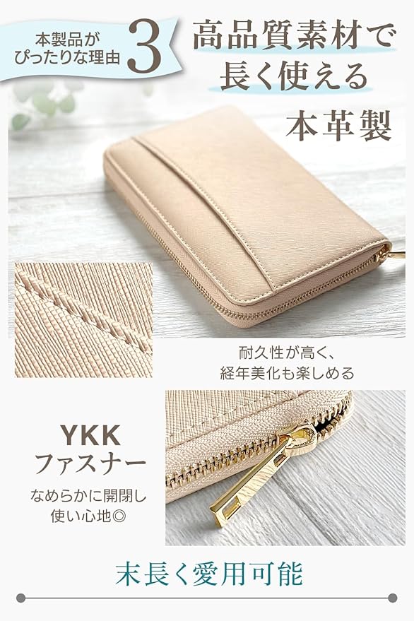 【整理収納アドバイザー監修】 RIMARUHE 通帳ケース (レディース専用)【本革xYKKのゴールドファスナーx磁気不良防止機能】 (シャンパンブラウン)