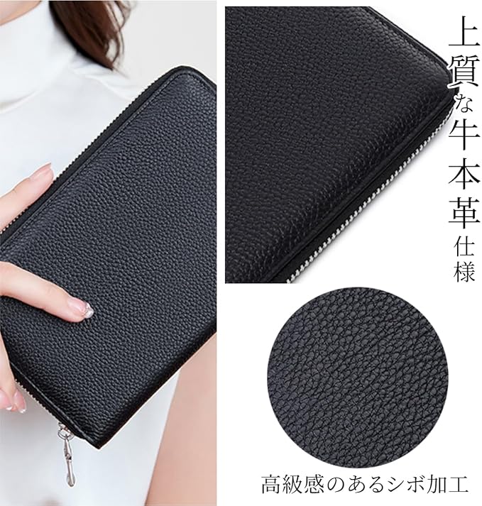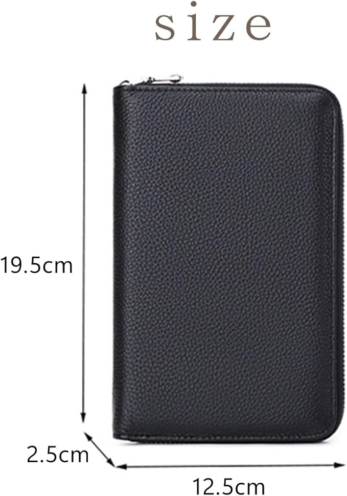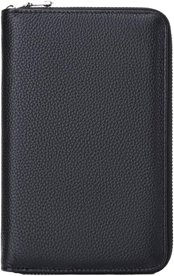 [KASSAI]牛革 通帳ケース じゃばら式大容量 RFID スキミング防止 パスポート カードケース(ブラック)