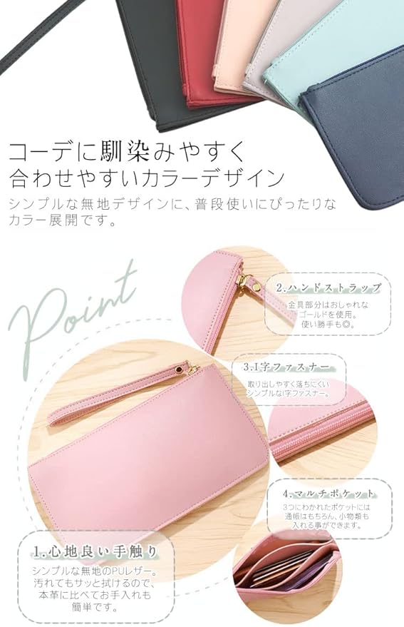 prendre 通帳ケース マルチケース 3ポケット 薄型 ハンドストラップ付き お財布 長財布 家計管理 シンプル PUレザー スリム コンパクト PR-BANK10
