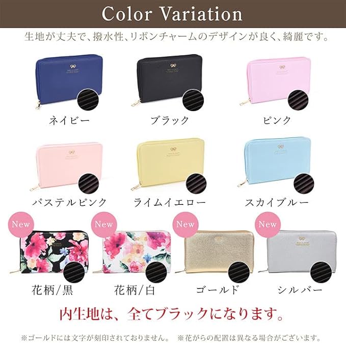 【ジュエルビューティーズセレクトのこだわり 】デザインの外見も使いやすさの内面も重視して、丁寧に作りました。綺麗なゴールドカラーのリボンチャームが綺麗です。丈夫で撥水性がある生地を使用。限定商品デザインを重視、撥水性、耐久性を重視、きちんと何度でも閉まるように、スムーズな開閉、ラウンドジップを採用しております。