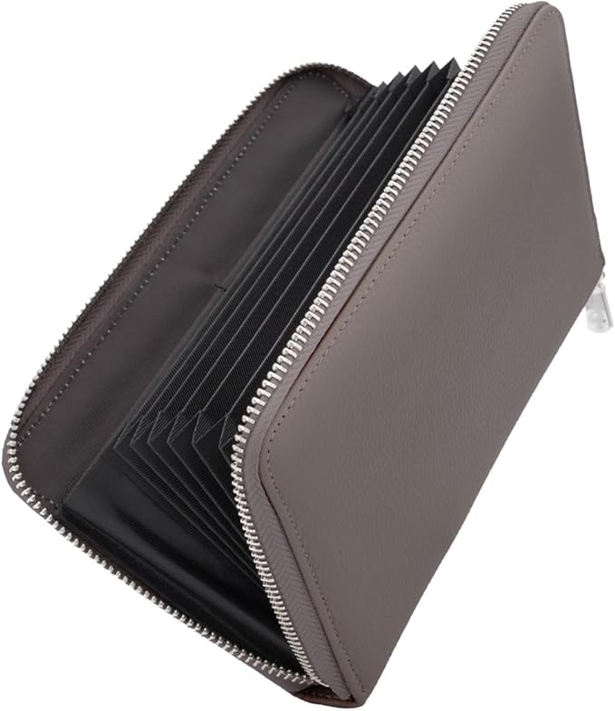 [boomie] 通帳ケース 【上質本革仕様x第三者機関認証済】 磁気防止 本革 スキミング防止 大容量 通帳16冊収納 ジャバラ 国内検品済 カードケース お薬手帳 パスポートケース 牛革 メンズ レディース (ライトグレー, M)