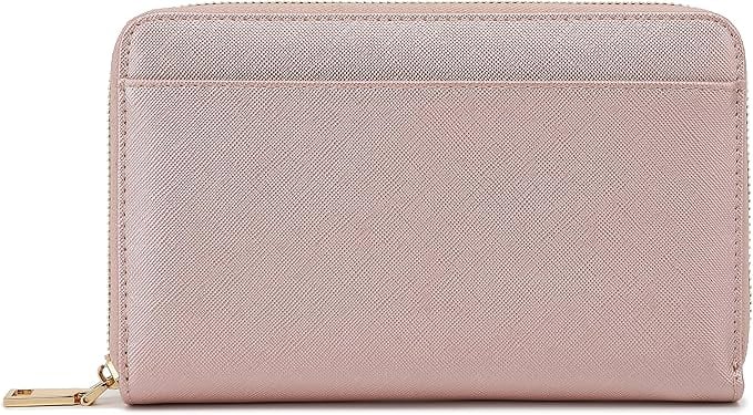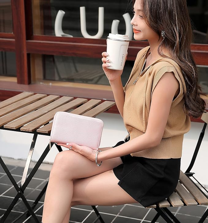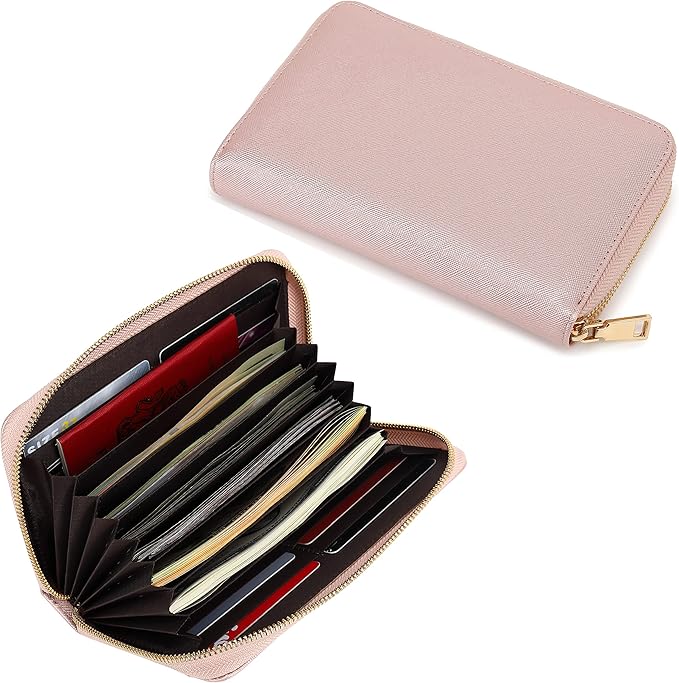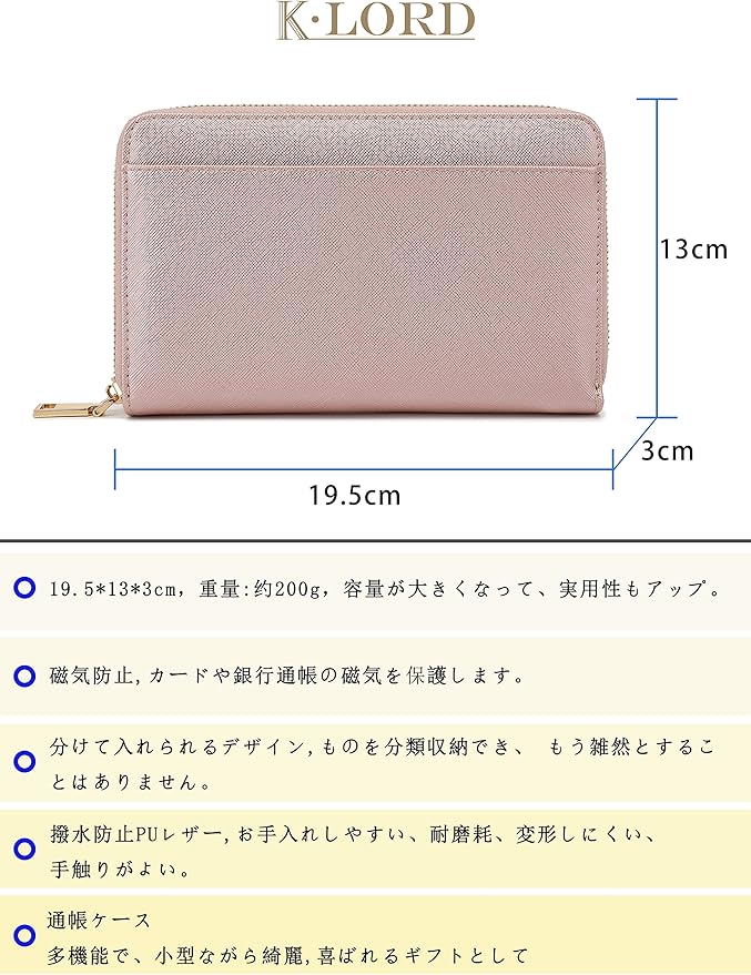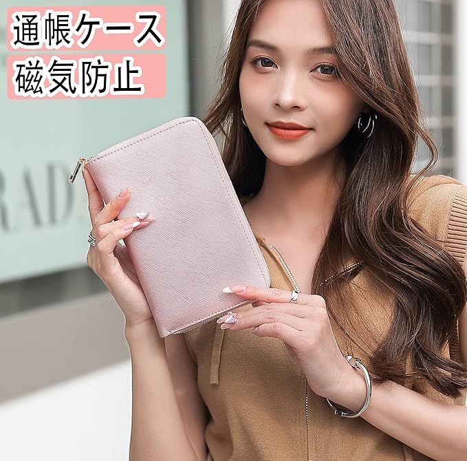 [K LORD] 通帳ケース 磁気防止 RFID 大容量 レディース レザー 通帳入れ 母子手帳ケース スキミング防止 ラウンドファスナー パスポートカードケース (Pink)