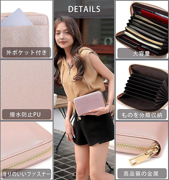 【多層、分けて入れられるデザイン】:カードスロット12つ+アコーディオン式しきり8つ。ものを分類収納でき、もう雑然とすることはありません。通帳 ・ おくすり手帳 ・ 母子手帳 ・ 年金手帳 ・ パスポート を最大12冊、カード12枚。外ポケット付き スマホを入れたりレシート