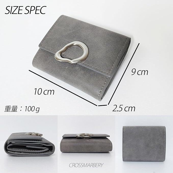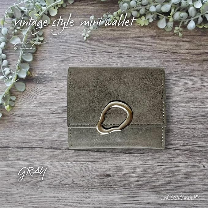 [クロスマーベリー] 小さい財布 レディース 軽量 可愛い 3つ折り ミニ コンパクト 使いやすい おしゃれ ボックス型 大人 金具 ヴィンテージ 小銭入れ グレー R111 Gray