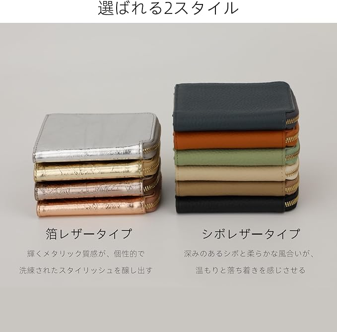 【全10色の豊富なカラーバリエーション】 様々なシーンやお好みのスタイルに合わせて選べる、全部で10色をご用意。プレゼントにも最適です。母の日、バレンタイン、ホワイトデー、クリスマス、誕生日など、記念日の贈り物としてもご利用ください。 【箔レザーモデル】 Rose Pink (ローズピンク) / Silver (シルバー) / Gold (ゴールド) / Rust (錆色) 【シボレザーモデル】 Black (ブラック) / Milky White (ミルキーホワイト) / Brown (ブラウン) / Navy (ネイビー) / Light Green (ライトグリーン)
