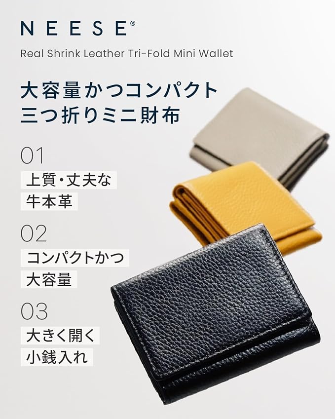 [NEESE] 【ミニマリストの最適解】 お札を折らずに収納 本革 ミニ財布 財布 三つ折り財布 小銭入れ ボックス型 カード7枚収納 手のひらサイズ コンパクト財布 メンズ レディース 牛革 一粒万倍日 ギフト 春財布 就職祝い ギフト 化粧箱付 新社会人 プレゼント