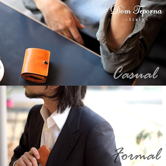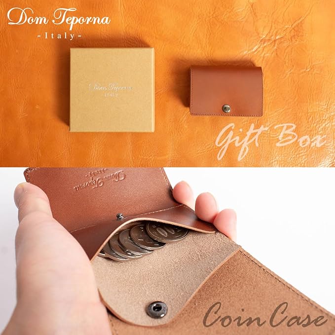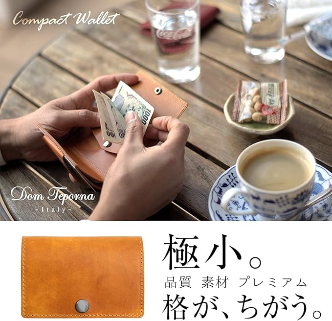 [DomTeporna] 小さい財布 本革 イタリアンレザー コンパクトな三つ折り ミニ財布 小銭入れあり メンズ レディース ブラウン