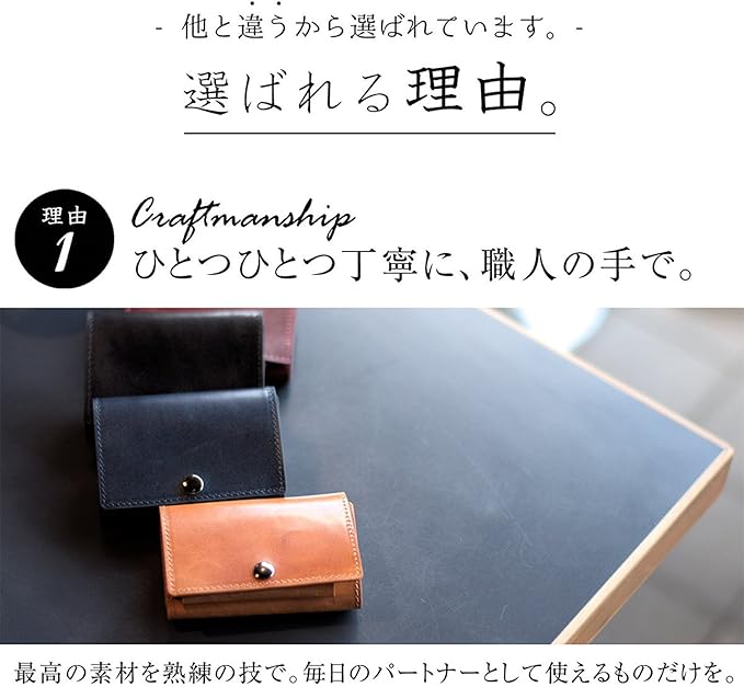 【 スマートウォレット 】コンパクトながら、たくさん入る。サブの財布としてはもちろん、メインとしてもキャッシュレスなライフスタイルなら十分な機能性です。ミニ財布にありがちな、お札を折りたたんで収納をしなくていいので、手間もかかりません。縫製、塗り処理など、厳重な品質管理のもと、最高な状態の仕上げでのご提供。ワンランク上のクオリティ。