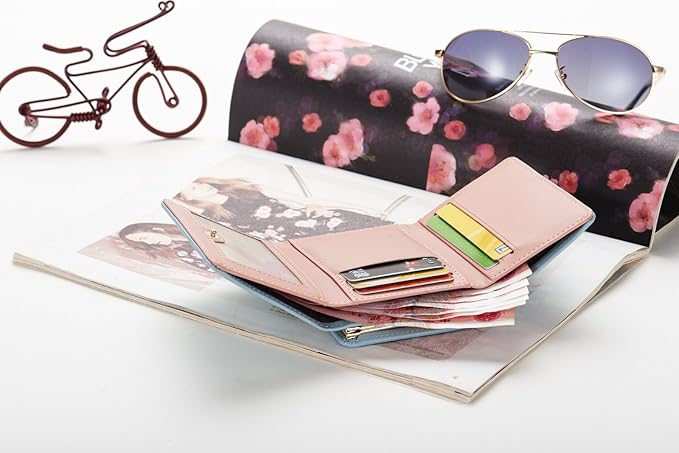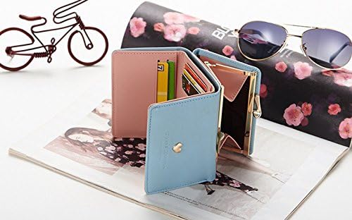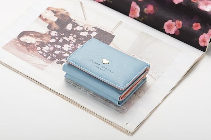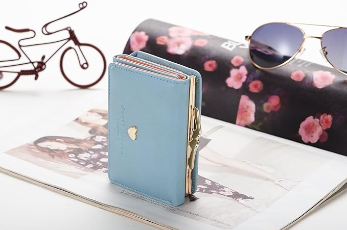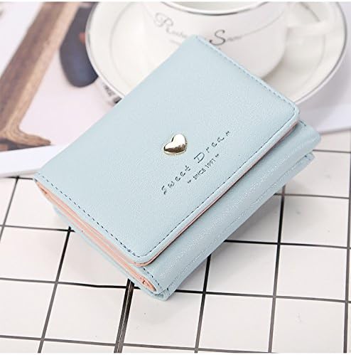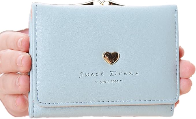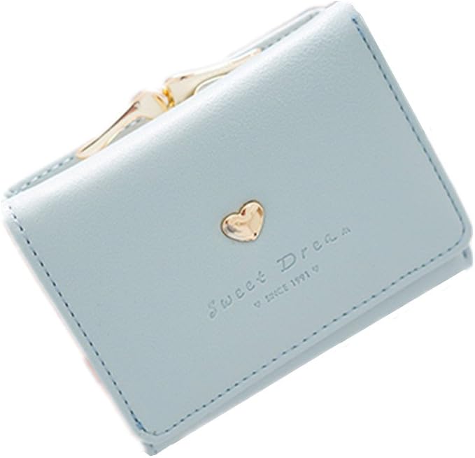 [Kingsie] レディースミニ財布 がま口 三つ折り短財布 ウォレット コンパクト 可愛い ハート カードいれ 小銭入れ プレゼント (ブルー)