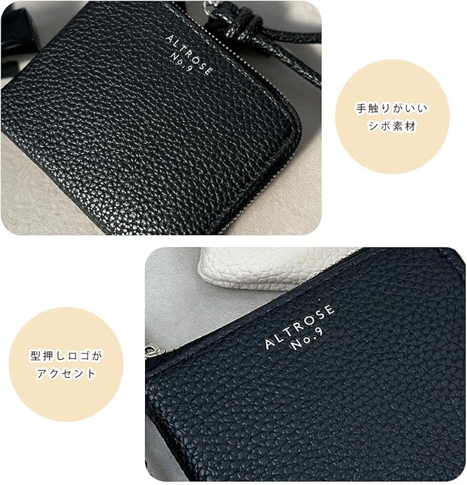 【機能性とデザイン性】・シボ感が美しい柔らかい素材。鍵やリップの収納としても◎・L字ファスナーできれいめなフォルム。手にもしっかり馴染んでくれます。・取り外し可能で便利なかわいいハンドストラップ付