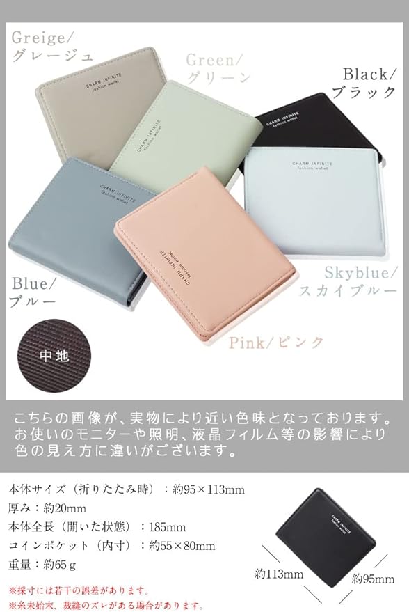 本体サイズ(折りたたみ時):約95 113mm 厚み:約20mm 本体全長(開いた状態):185mm コインポケット(内寸):約55 80mm