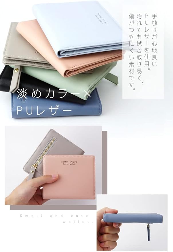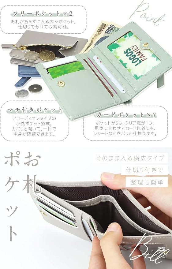 prendre 薄型 折りたたみ財布 レディース 二つ折り スリム 軽量 ウォレット 小さめ コンパクト 財布 カード入れ パステル かわいい おしゃれ ミニウォレット ミニ財布 プレゼント ギフト (グリーン) PR-WALLET10-GR
