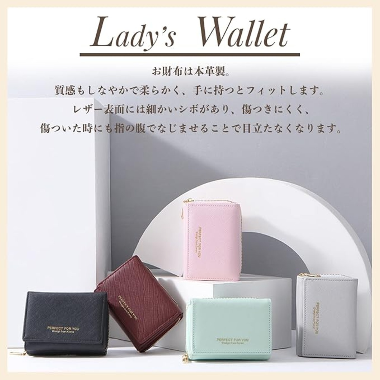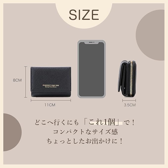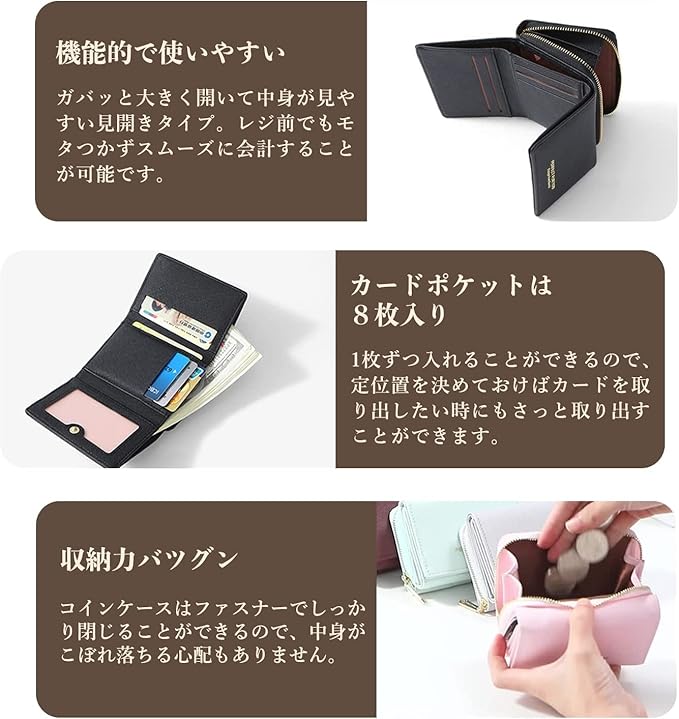 【高品質PUレザー】撥水性がある素材は耐久性も高く、長くご愛用いただけます。少しの汚れならサッと拭いてキレイになるお手入れが簡単なお財布です。