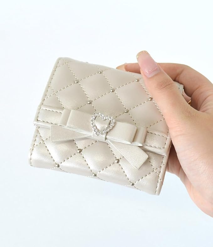 [SecretDoor] パール 三つ折り財布 レディース 3つ折り財布 コンパクト財布 ミニ財布 小さい財布 女性 ミニ 人気 限定商品 可愛い 薄い 薄型 コンパクト 折りたたみ 財布 さいふ 使いやすい 大容量 小銭入れあり おしゃれ かわいい パール キルティング ビジュー 333023-330