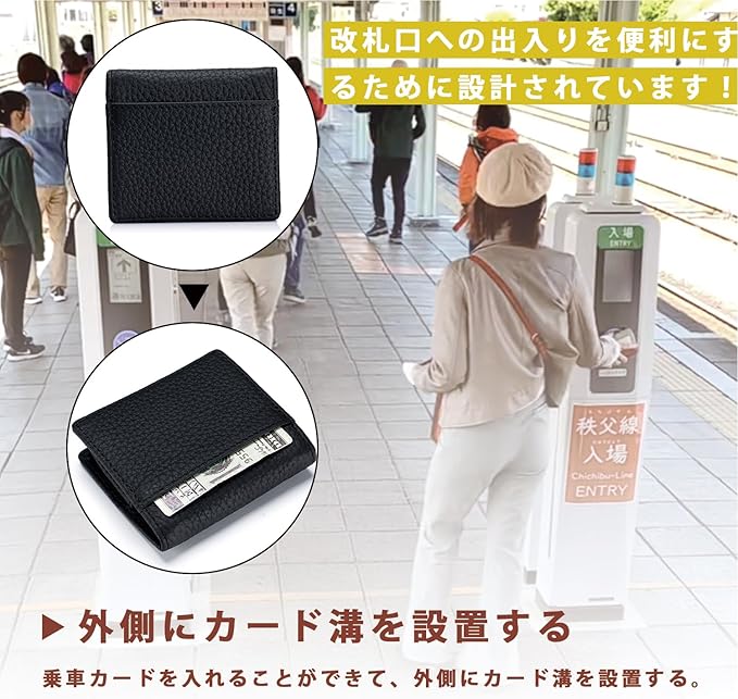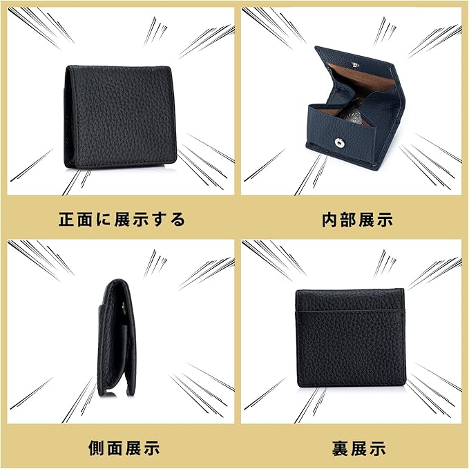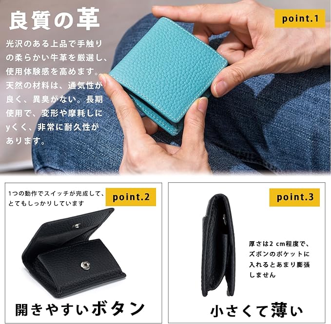 【実用性】横7.5㎝ 縦8㎝ 手のひらにすっぽりと納まり、上着の内ポケット、胸ポケット、パンツの後ろのポケットなどにスッと納まります。通勤、通学途中に自動販売機で飲み物買ったり、電車の改札で定期入れとして使ったり、とても便利です、小銭がパッと見れ ガバッと開き 取り出しやすいので、支払いにもたつかずスマートで カッコイイ!また、外側にカード入れがあるため、通勤・通学時の駅への乗り入れもしやすく、颯爽とした生活が送れる。